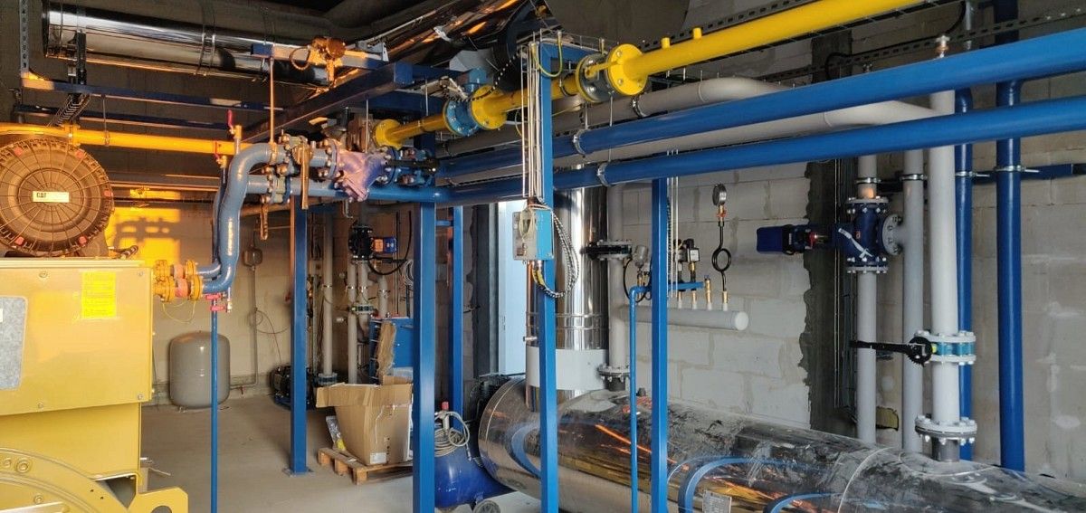 Instalacja dla agregatu kogeneracyjnego o mocy 999kWe, wykonana za pomocą rowkowanego systemu rur firmy Victaulic