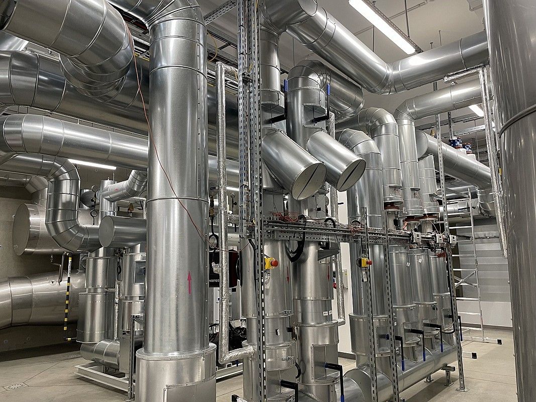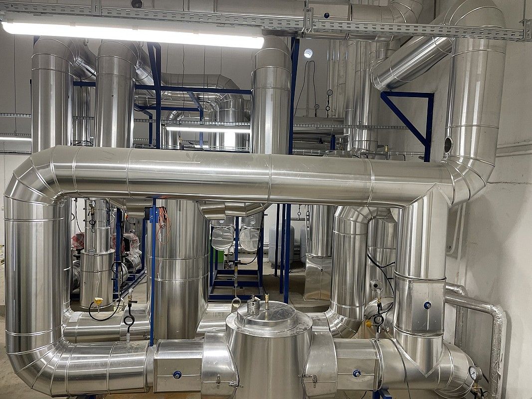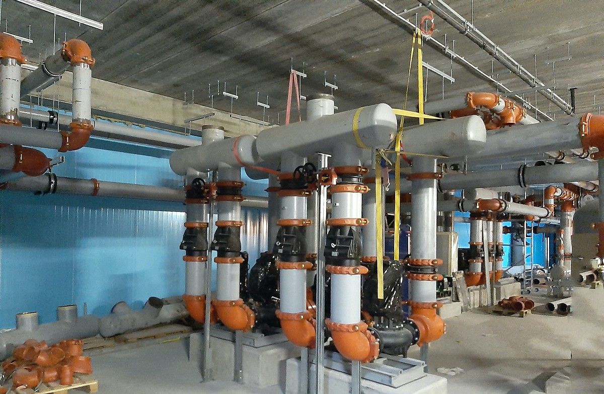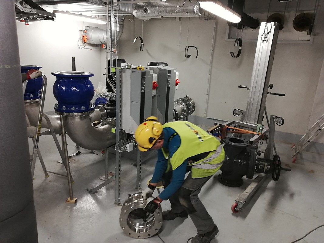 Wykonanie instalacji maszynowni wody lodowej. Instalacja wykonana za pomocą rowkowanego systemu łączenia rur firmy Victauclic.