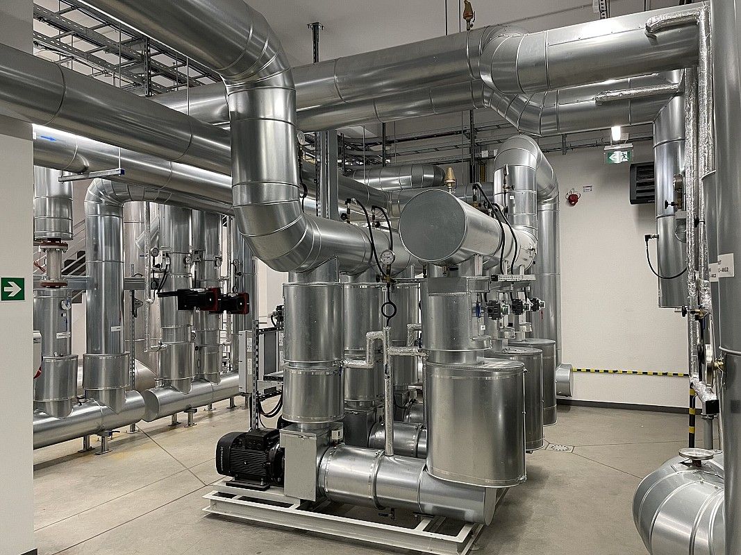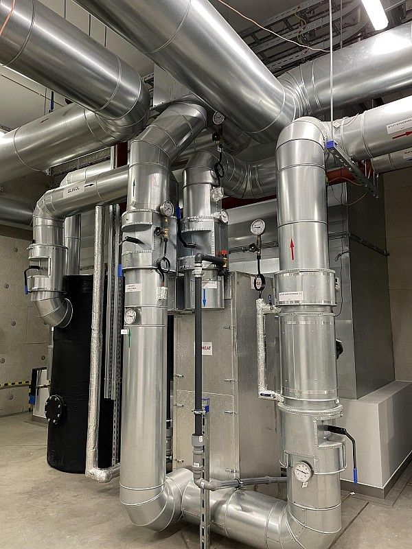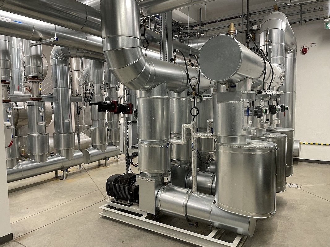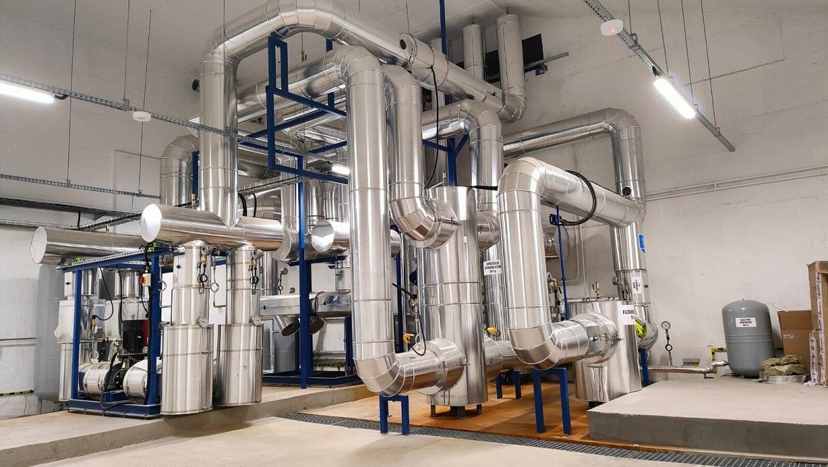 Wyprowadzenie mocy cieplnej do miejskiej sieci ciepłowniczej z jednostek kogeneracyjnych o łącznej mocy 3,3 MW wraz z instalacją gazu i pomp ciepła.